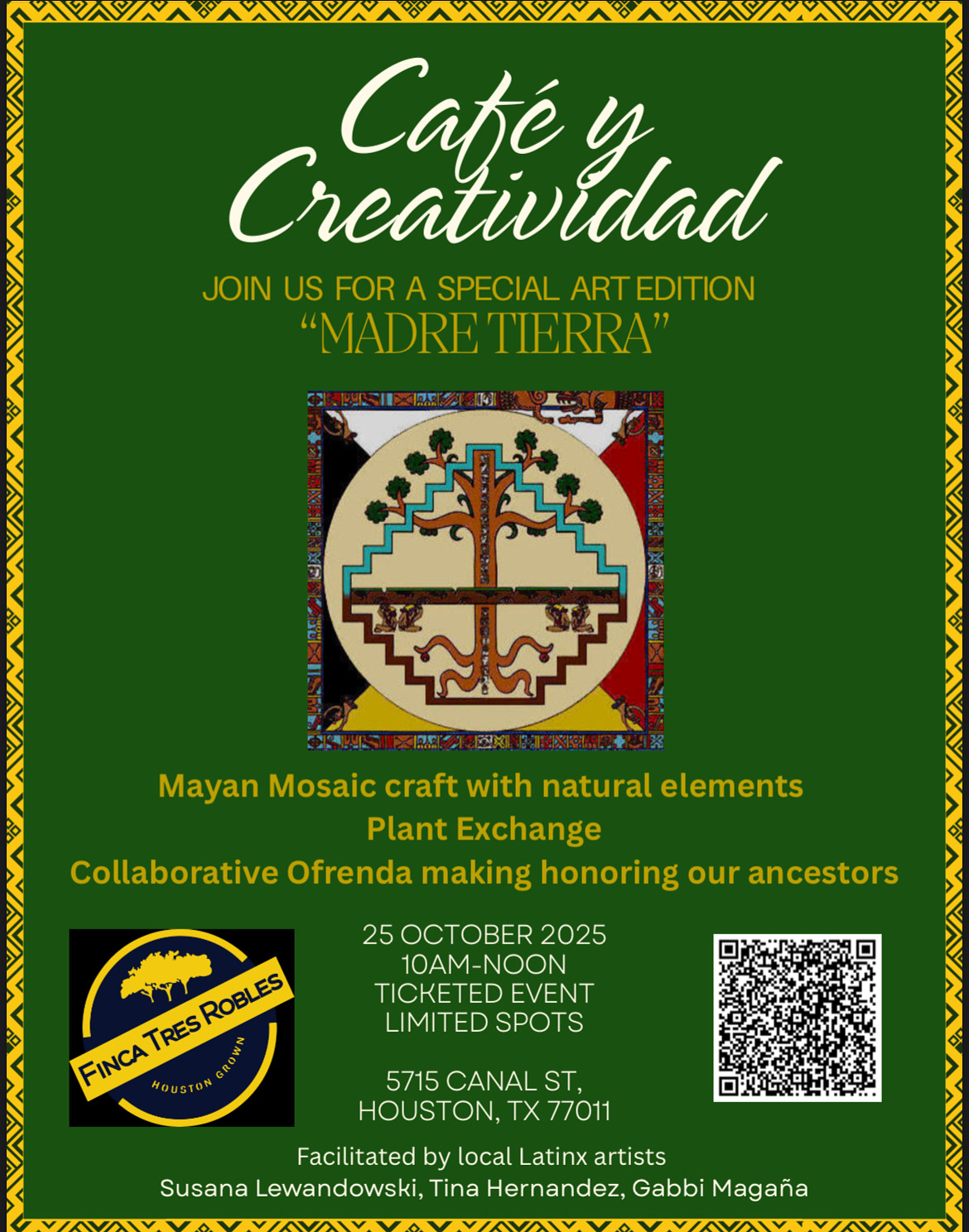 Join us for a very special edition of Café y Creatividad ~Madre Tierra~ where we’ll gather to celebrate ancestry, connect and explore meaning-making through the beautiful art of creating mosaics. There will be an opportunity to join us in collaborating on an Ofrenda, ending with a plant gifting from our home to yours.