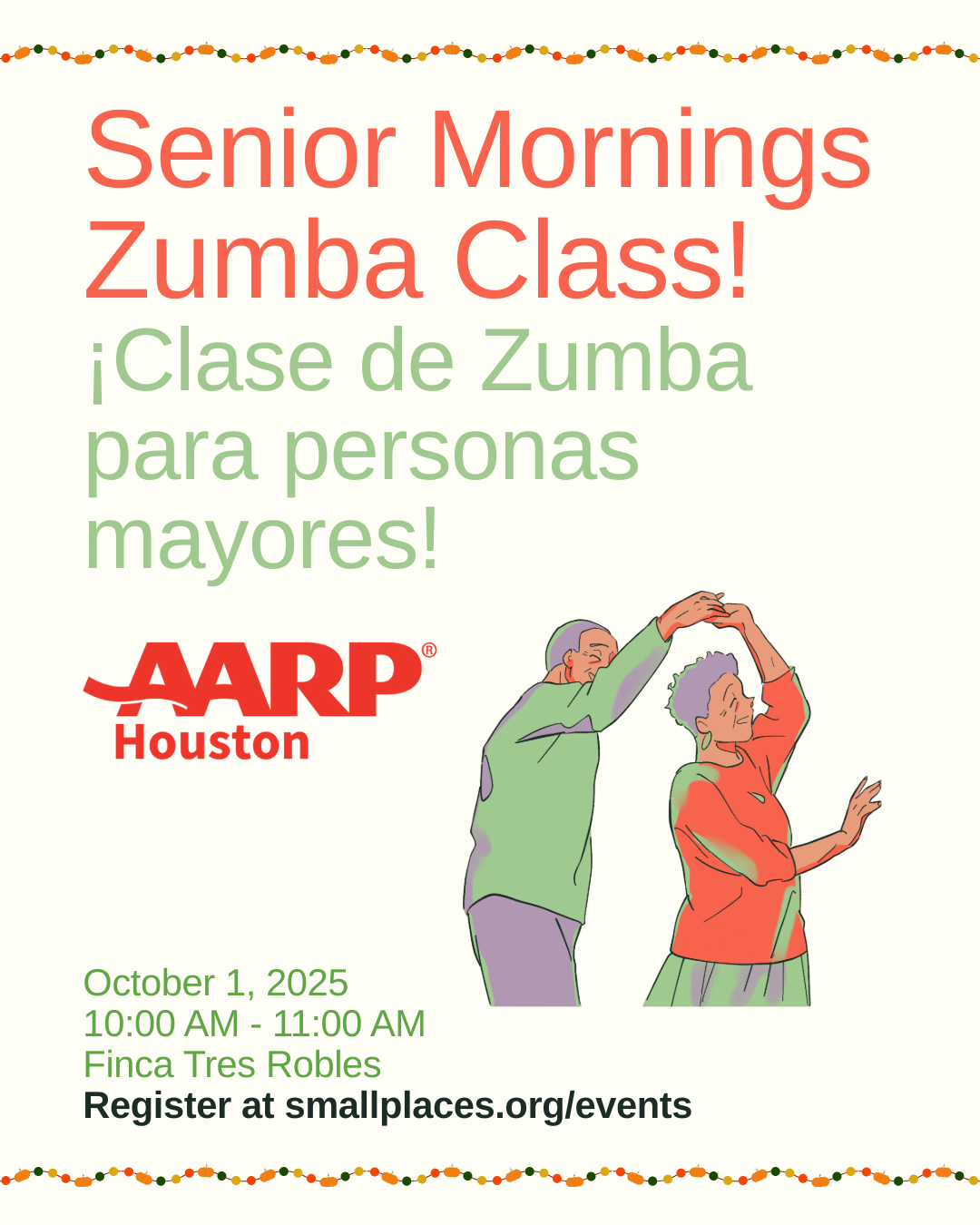 Para ver más eventos próximos, haga clic en el enlace. https://events.aarp.org/Zumba_2025